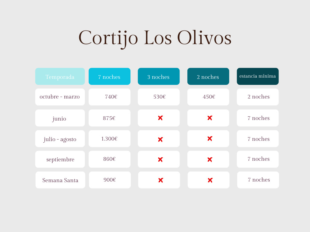 Tenga en cuenta que el precio de nuestras villas varía según el número de noches, casa y temporada.